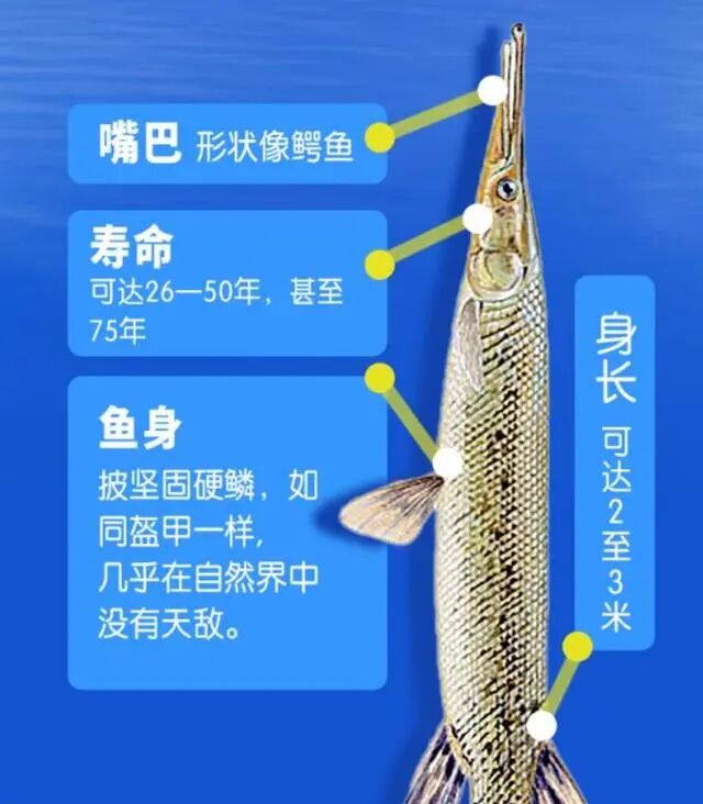 鳄雀鳝原产于北美,也算是一种“活化石”鱼类,它们的种群历史可以追溯到一亿多年前,可见其生命力相当旺盛。