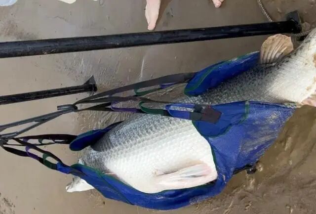 海峡钓鱼网——2.2米德州水怪 188磅大鳄雀鳝出水。