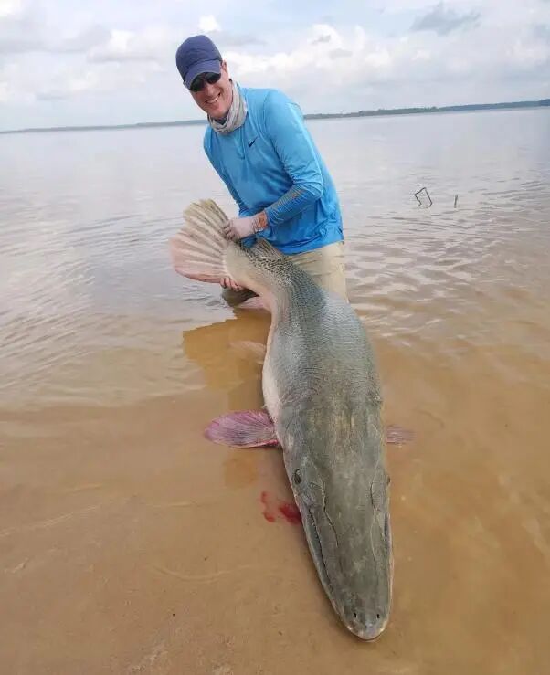 重达170斤!国外钓鱼达人擒获巨型“水怪”——鳄雀鳝