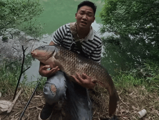 当男子把这条大鲤鱼抱起来的那一刻,整个人看起来两眼放光,足以见得“钓鱼佬”钓中大鱼之后的激动之情。