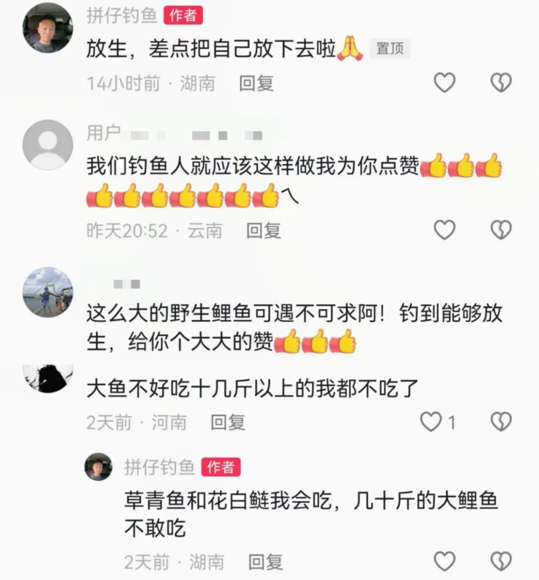 “我们钓鱼人就应该这样做,为你点赞!”