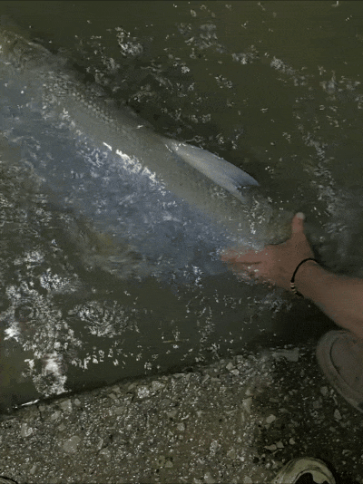 只见他在同伴的陪同下,小心翼翼地将这条大鱼抬起来,然后轻轻放回河中,为了防止它缺氧,钓鱼男子还抓住这条鱼的尾巴,在水中来回推送几下,好让它的鳃部过滤更多的氧气。