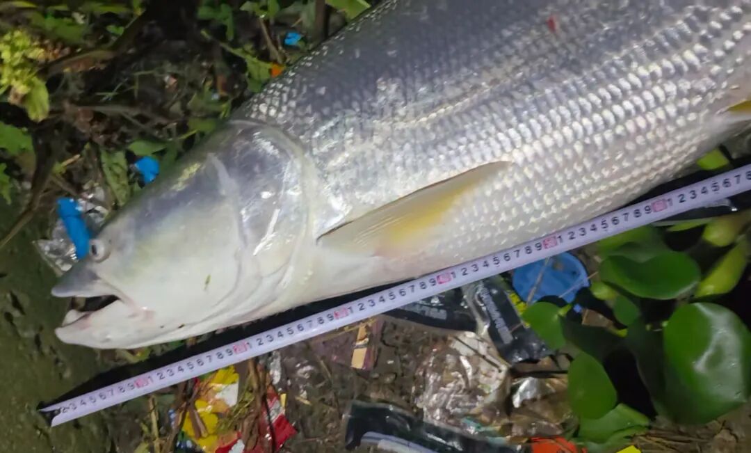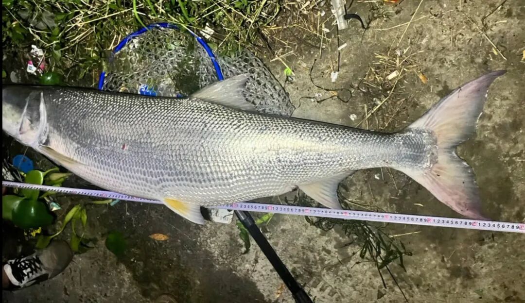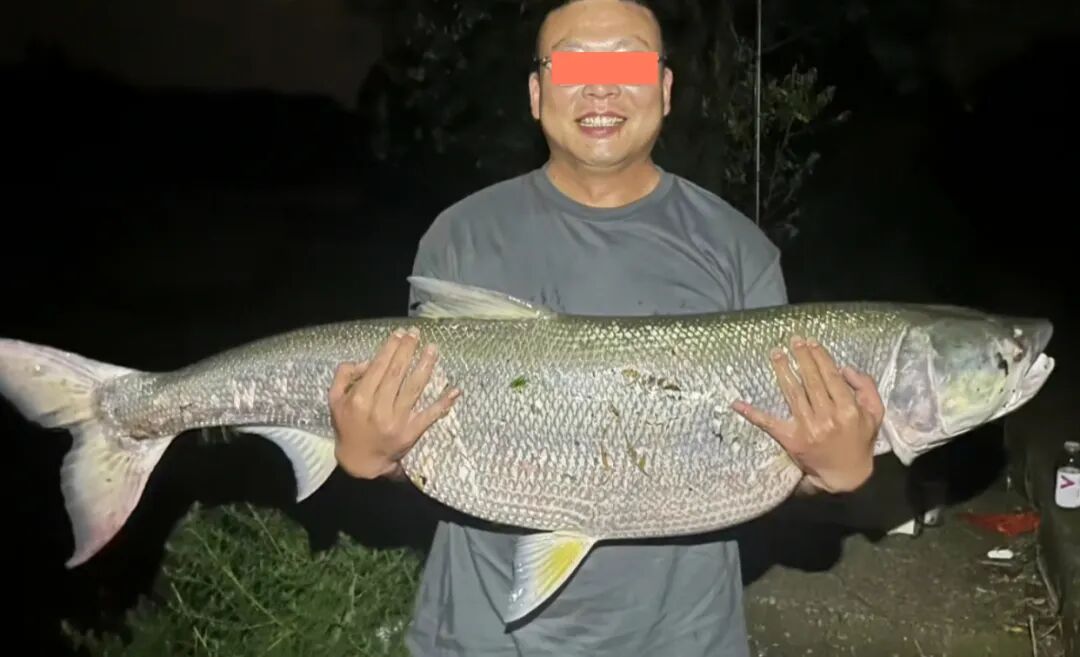 6月22日,浙江湖州一位路亚垂钓爱好者@大大雷,夜间在苕溪垂钓时竟然钓获了一条想都不敢想的大鱼,经过测量之后体长达到1.45m,体重75斤。