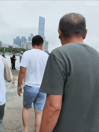 根据网友@“九筒——让子弹飞”发布的一段视频,在武汉南岸嘴江滩公园,不少垂钓者正在扬竿钓鱼,突然岸边传来一阵骚动,原来有人中鱼了。一位中年男子钓获了一条大鱼,正用控鱼器拎着往回走,身后追着一帮人,拿着手机争相拍照。