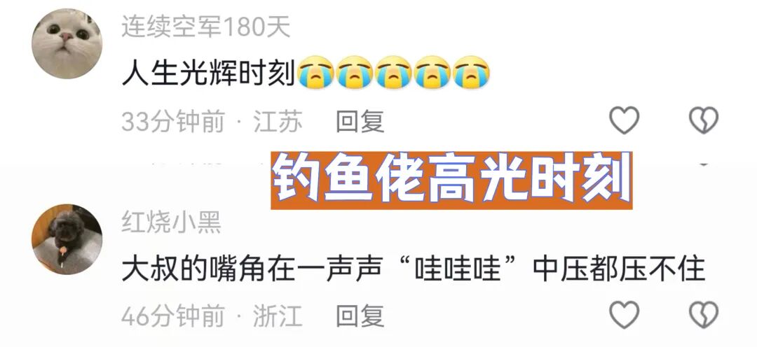 “人生的光辉时刻!”网友“连续空军180天”直接给这位钓鱼男子来了一个一锤定音的结论,看来这位连续钓不到鱼的网友,真的是有点羡慕人家的“亚米级”了!