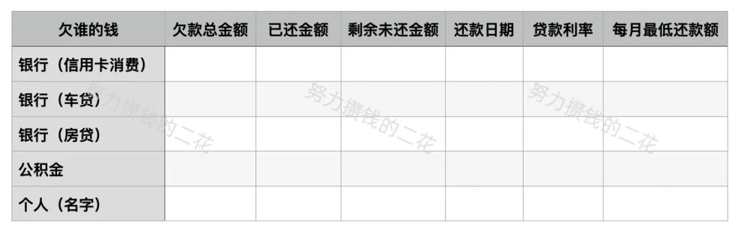 先搞清楚我们欠了谁的钱、欠了多少、约定的还款日期、约定的负债利率以及最低还款额是多少?