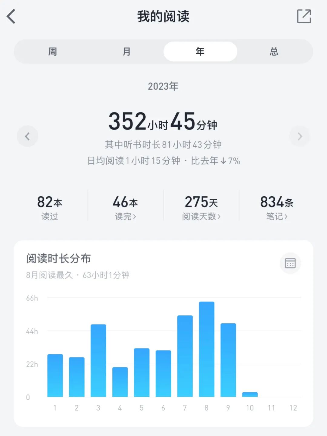 2023年至今,我在微信读书上花了352小时,还不包括Kindle读书和读纸质书。