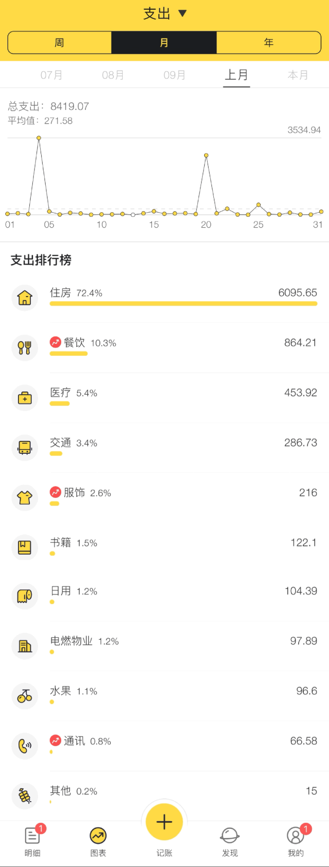 主要还是花得少,其中房贷占比28%以上,日常花销只占了不到11%。