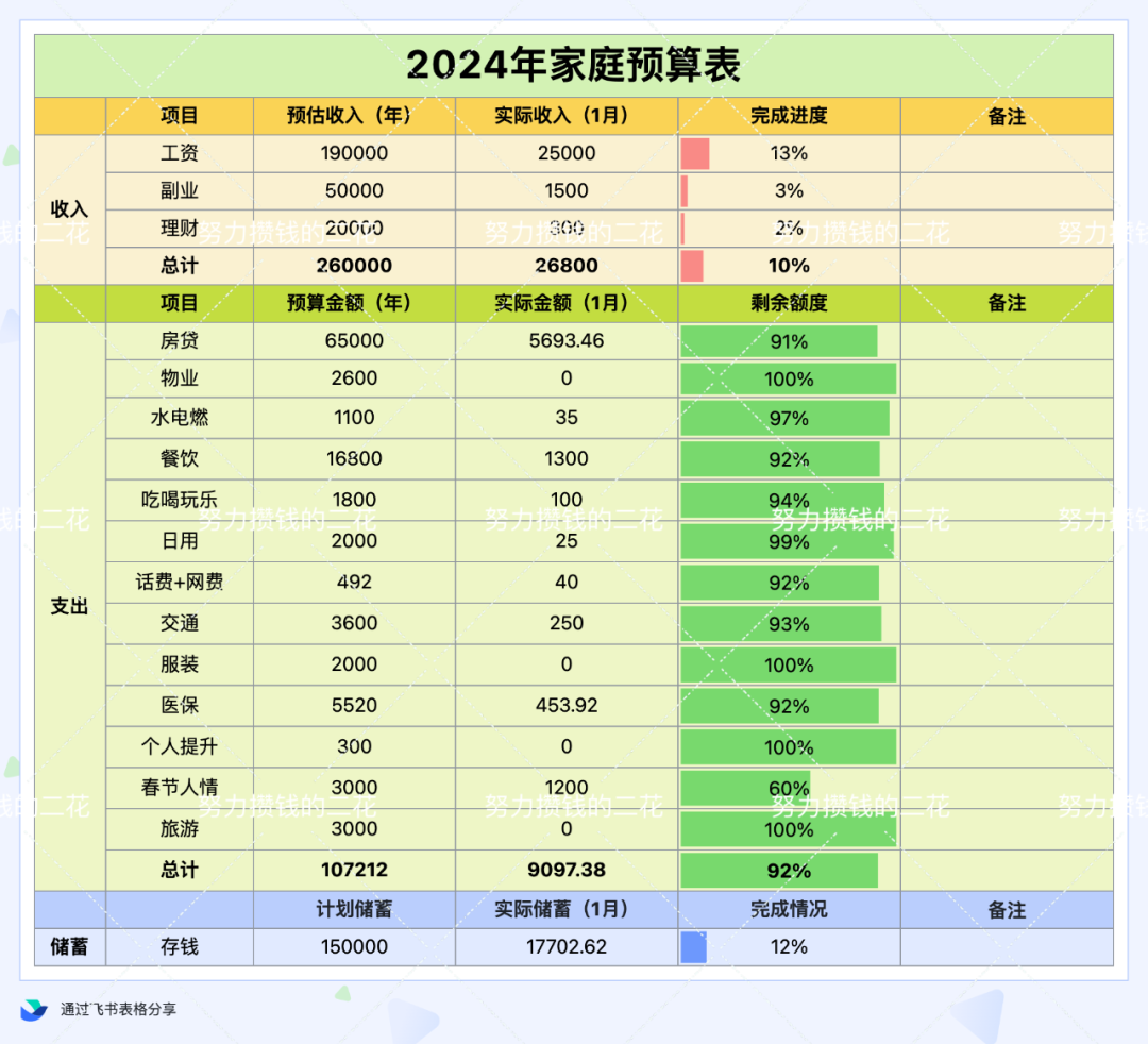 我之前分享过我们家2024年的预算规划,是以文字形式展现的,不够直观。