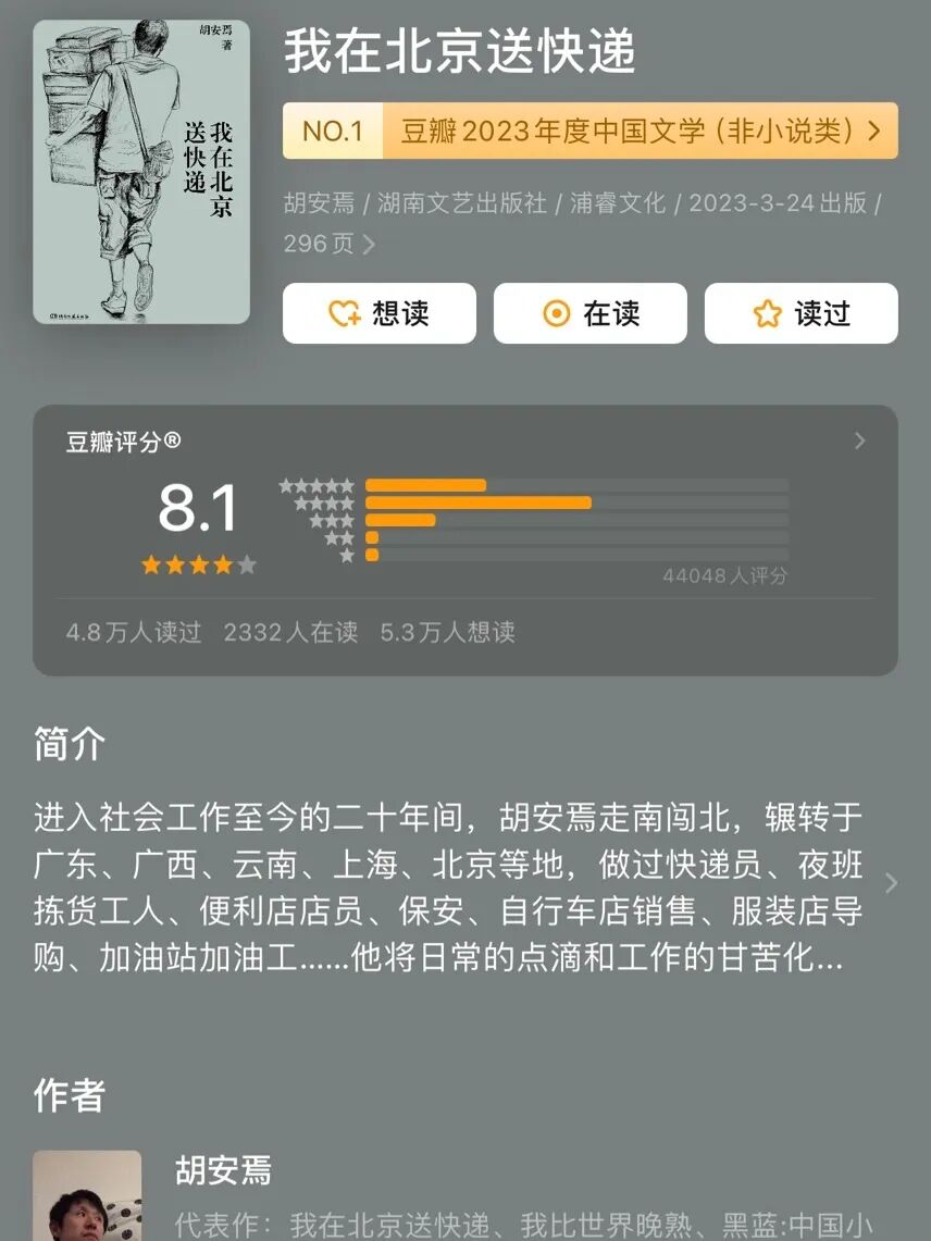 读这本书的时候,我想起了另一本书,胡安焉的《我在北京送快递》。