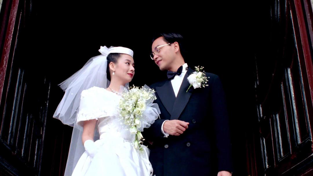 电影最后,他们手挽手走出礼堂,洁白婚纱,一对璧人。