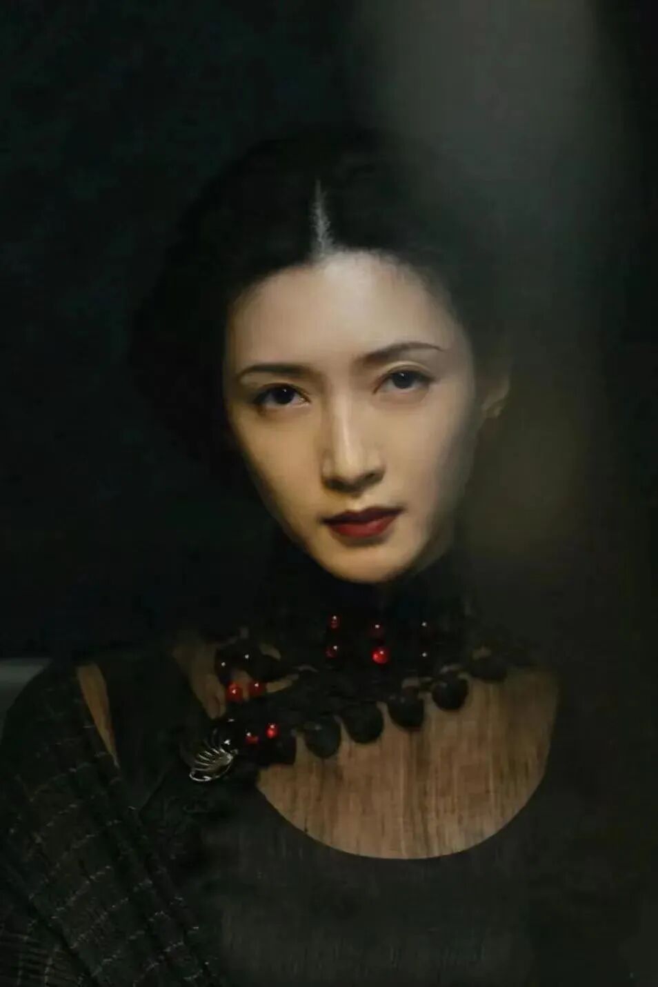 狱中的审问,江疏影一袭黑色旗袍,深色口红,苍白的脸,有一段剖白。