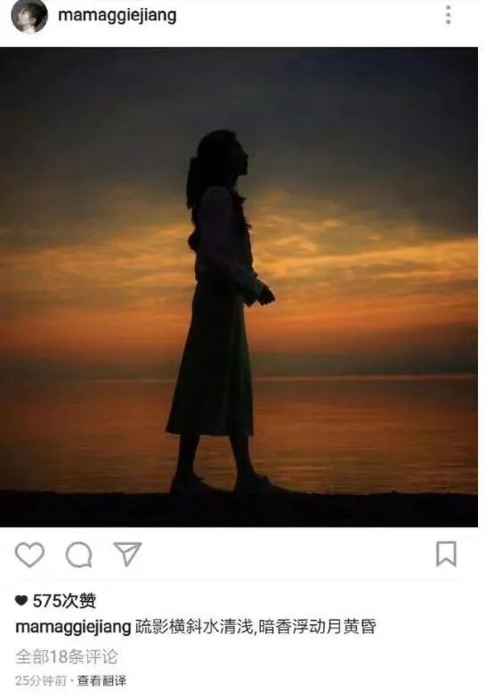 江疏影也不客气,在社交媒体上发布了一张照片,配上诗句,在ins上也发布了。