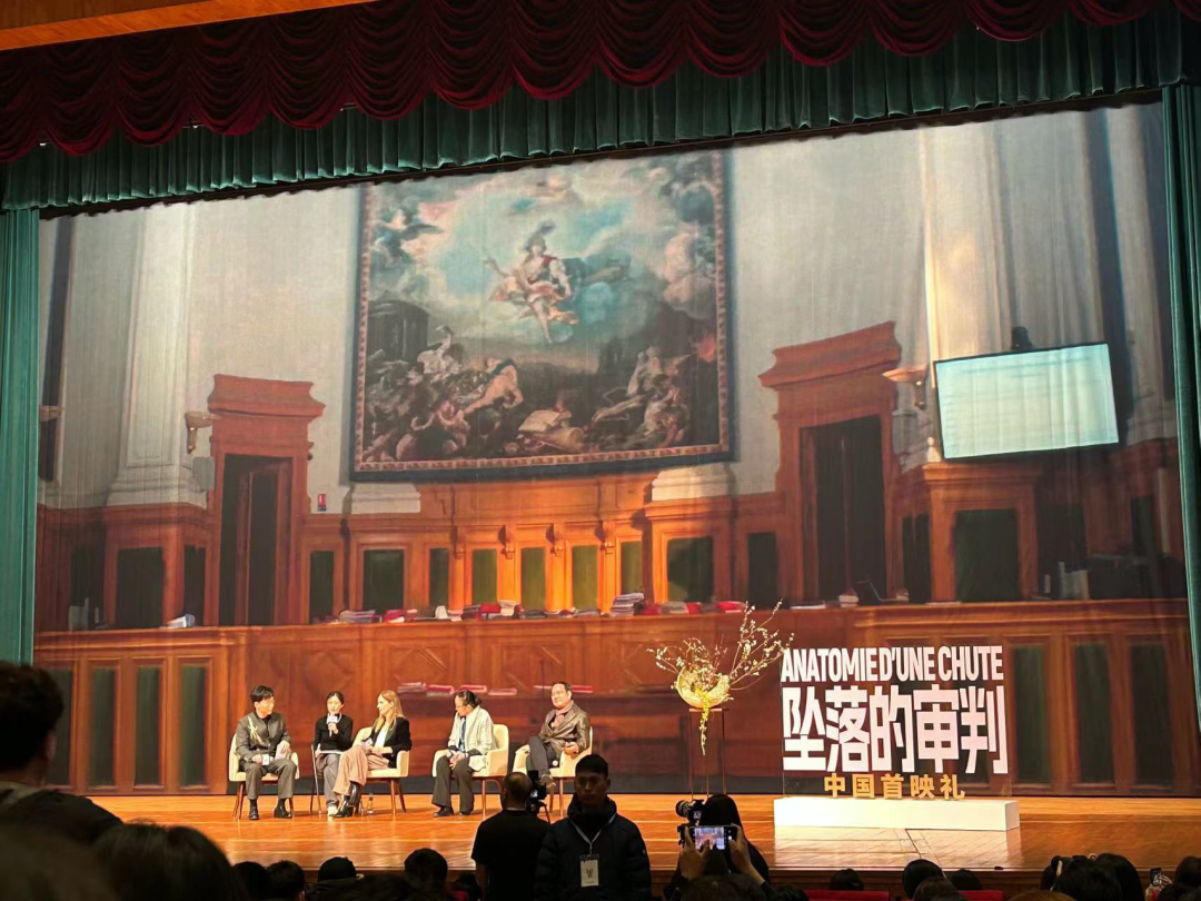 昨天,《坠落的审判》在北大校园首映,导演一下飞机就来到现场,主持人是陈铭(武大讲师),对谈嘉宾有戴锦华(北大中文系教授)、董强(北大法语系教授)。
