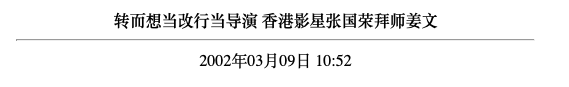 2002年3月份,有个新闻,说“张国荣拜师姜文”。