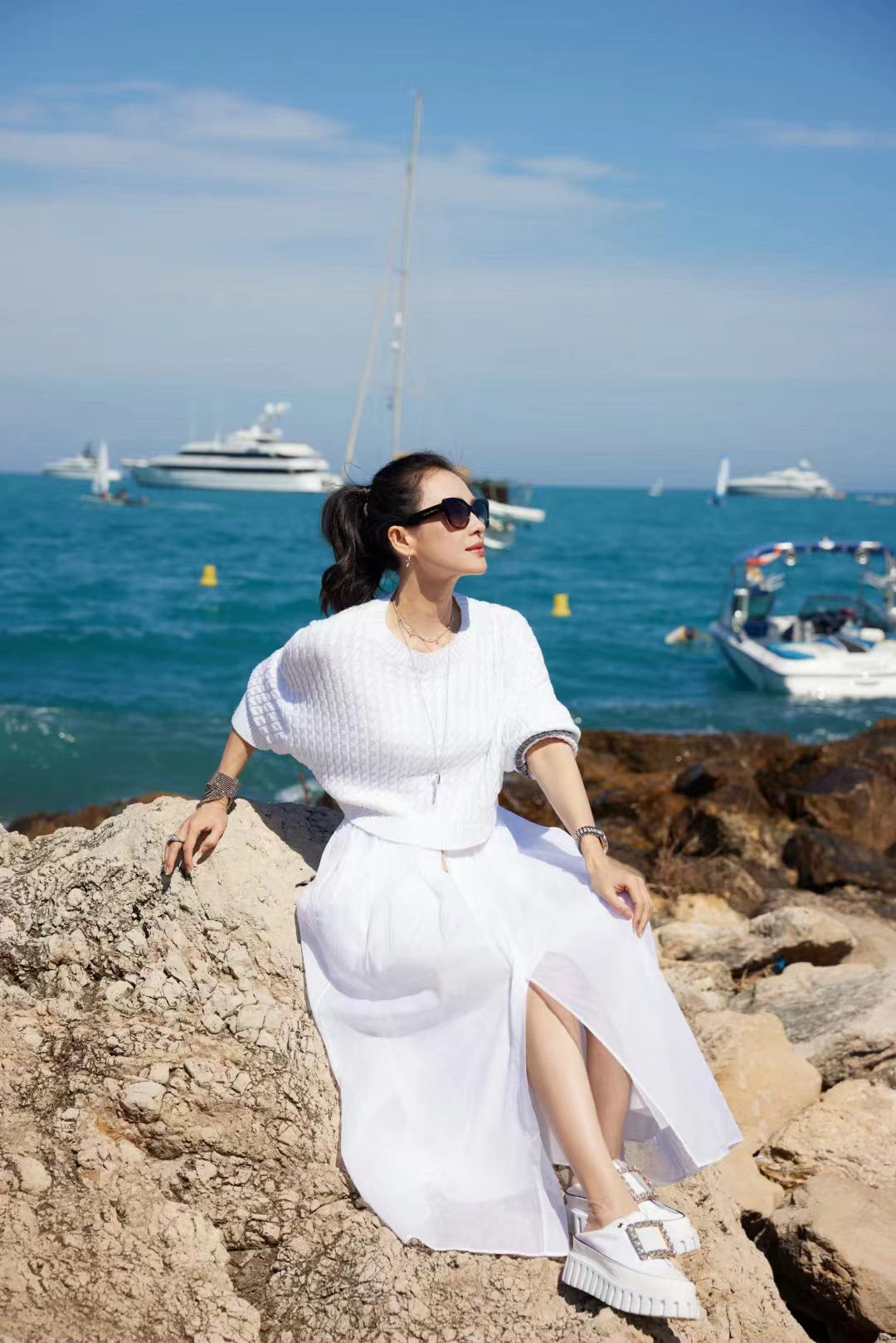 在南法亮丽的阳光和蔚蓝的海边,一身白衣的章子怡,也是一身重启和希望的光芒。