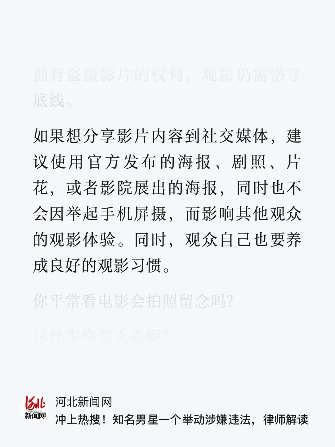 其次,这个行为就是不文明的啊。你不是包场,你对着银幕点亮手机,咔咔拍照,影响他人观影体验,就是教养不咋地,素质也堪忧。