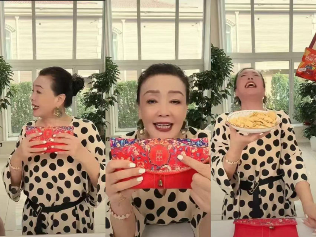 晚上的直播,张兰展示了这个红包,有新婚的喜庆刺绣。她对着镜头大笑,情绪很好……
