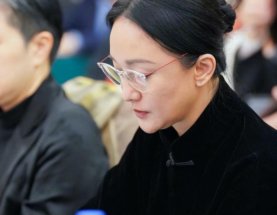 前几天,中国影协代表大会。那种官媒会议镜头,明星们都滤镜尽失,但是周迅,一袭中式盘扣衣服,戴着眼镜,低着头,有双下巴,气定神闲,还是那么美。