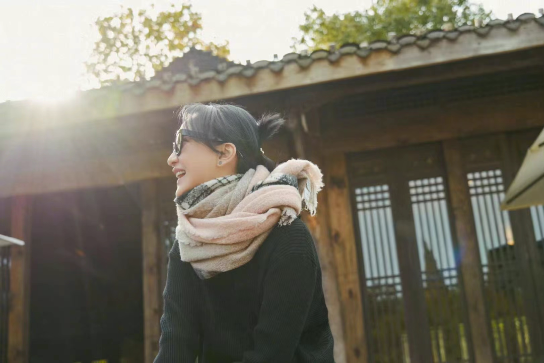 大冷的冬天里,看她穿得暖暖和和的,笑容灿烂,那么自在,真好。