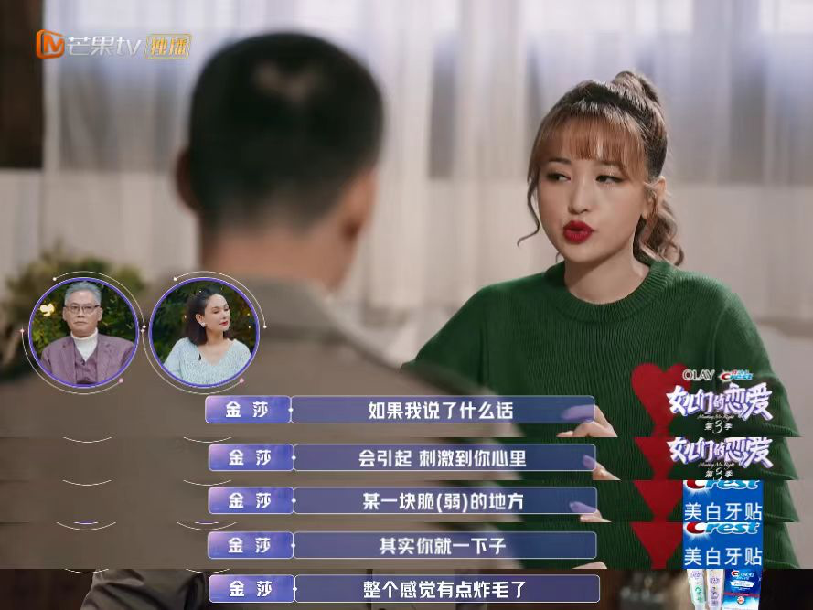 其次,她的理性并没有掉线。有个节目,安排了一个很优秀的精英男嘉宾,她也有点动心,但最后还是拒绝了。讲述理由时,可以看到她很清醒,她能敏锐发现男嘉宾貌似脾气不好,不够投入,等等。