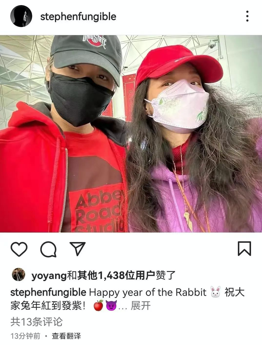 大年初一,冯德伦晒了张他和舒淇的合照,照片里,俩人戴着口罩,靠在一起,看得出舒淇是纯素颜。