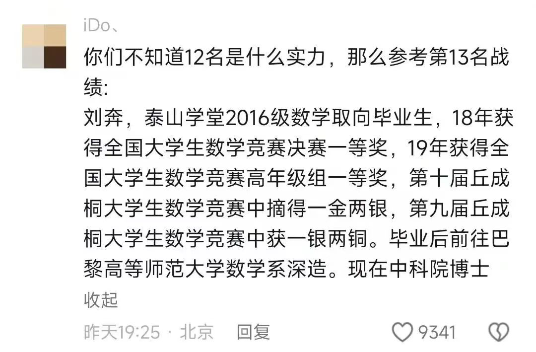 搞笑的是,因为姜萍排名第12,很多人注意到了排名第13的刘奔。