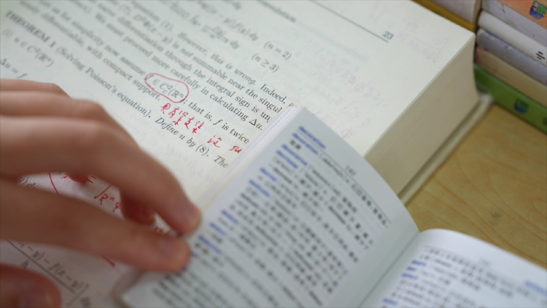 为了看懂英文的《偏微分方程》,姜萍一边查字典一边学习……