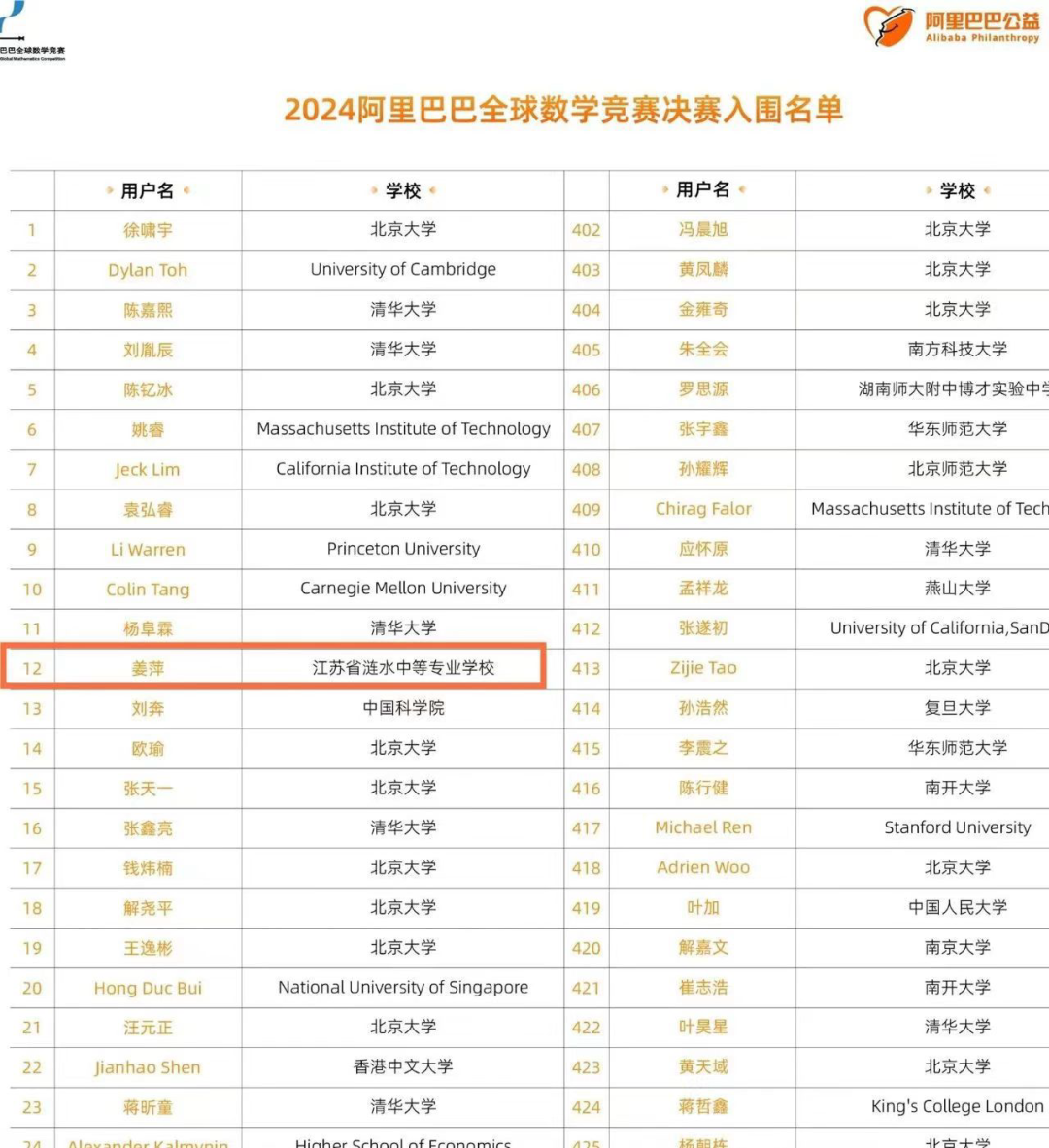 这次预赛难度也很大。名单里的前排,放眼望去,几乎都是北大,清华,剑桥,普林斯顿这样的名校,姜萍和她的学校,真的就像名门宗派里,一支静静的水姜花……