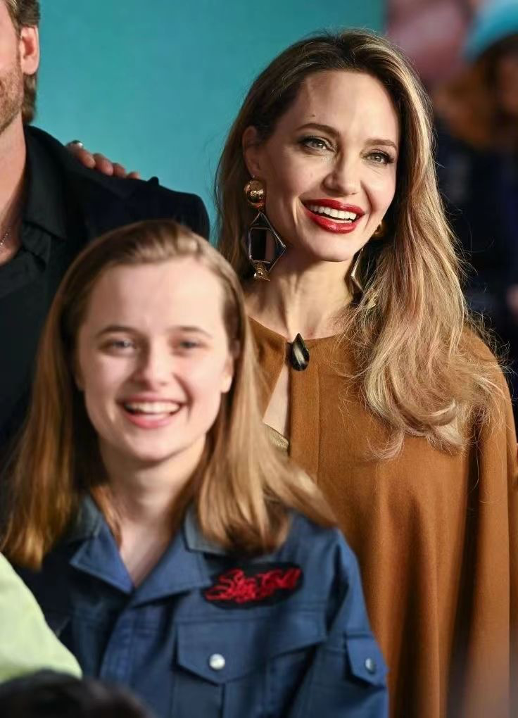 颁奖典礼上,49岁的朱莉,带着15岁的女儿薇薇安一起出席。