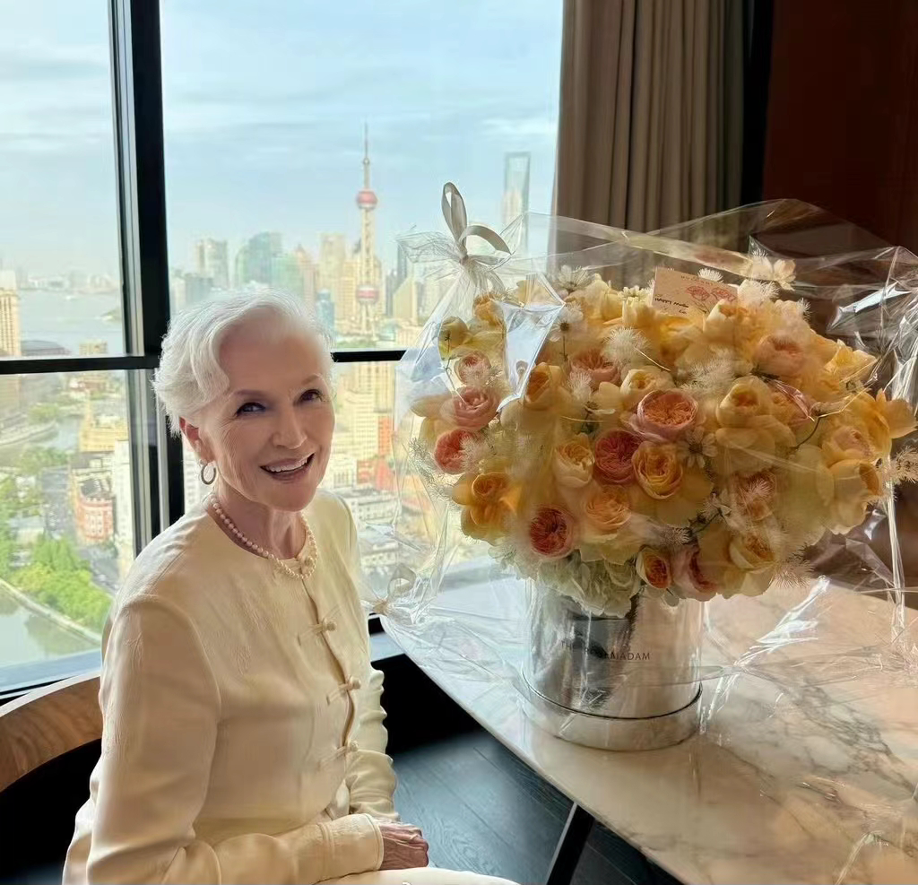 70多岁的她,为了自己事业,又开始自学中文。上次她游杭州西湖,还点赞了一辆粉红特斯拉,为儿子事业打call……