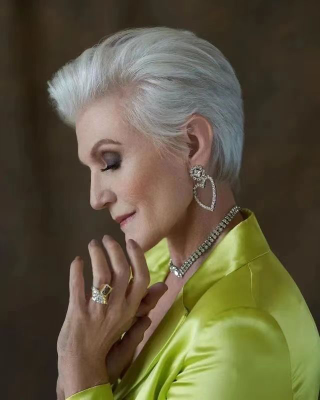 60岁时,在儿女们支持下,她重新回归T台。一头白发,台风干练有力。69岁时候,登上美国时代广场,拥有四块广告牌。