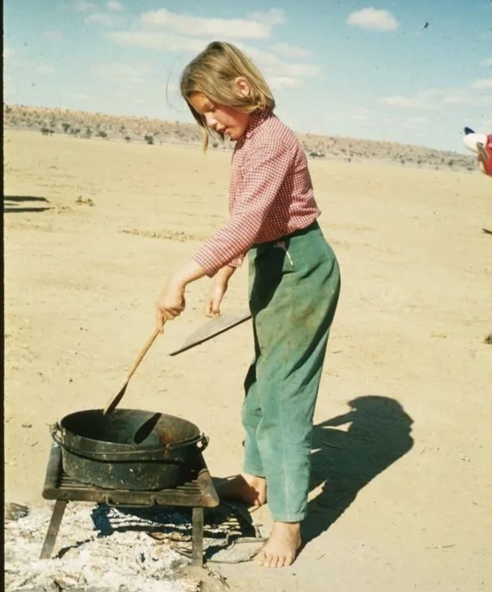 他俩也带孩子们开飞机去沙漠、丛林探险,这个图,是梅耶小时候在沙漠里做饭……