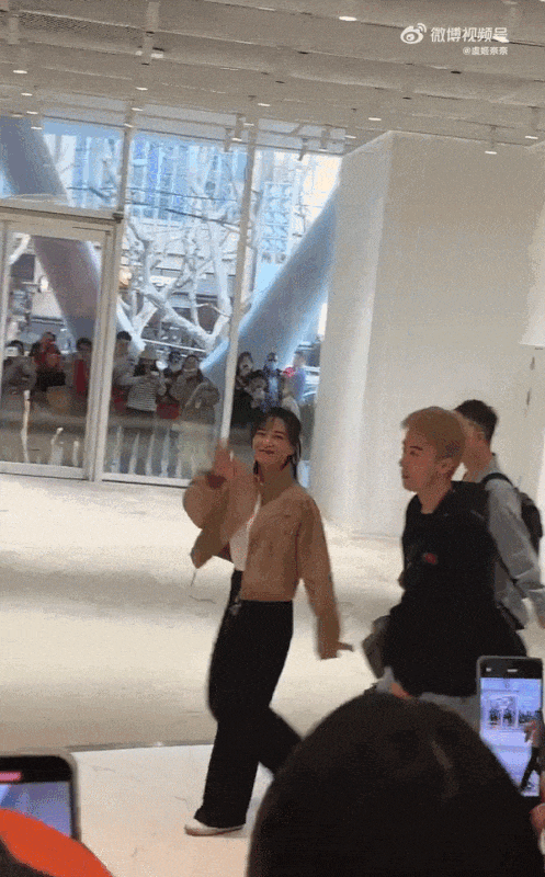 动图来一波。这是穿着Prada的西装,牛仔裤,运动鞋的时候。