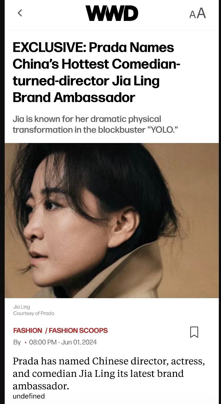 时尚权威媒体WWD,也对贾玲的代言做了报道,“从喜剧演员转型的导演”贾玲。