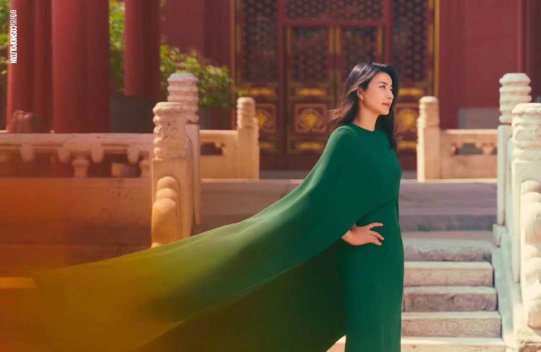 “跳水女皇”郭晶晶,绝对和故宫相得益彰。一抹深绿和故宫红,大女主气质,呼之欲出。