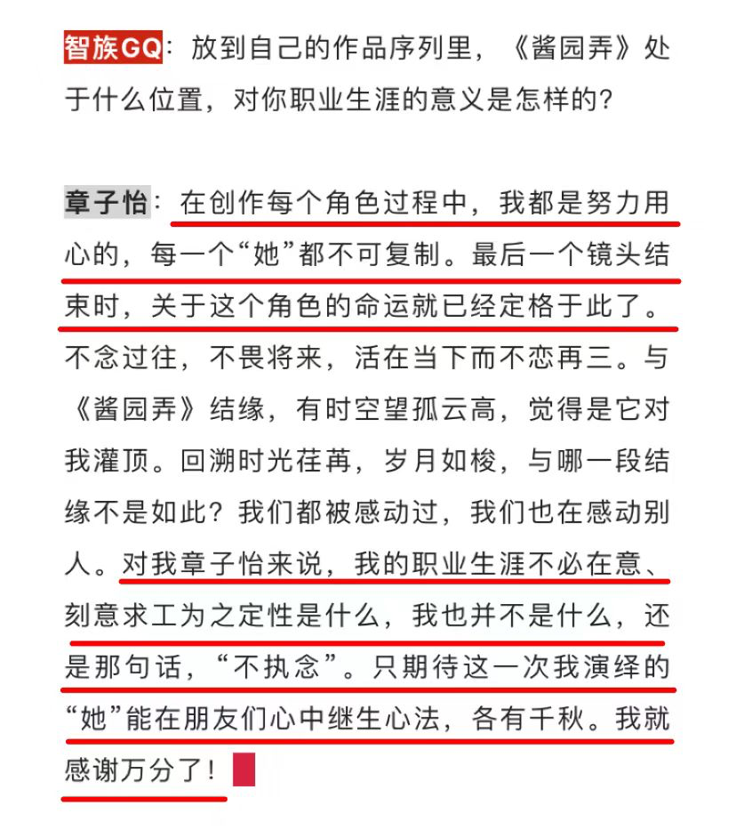 《智族GQ》的访谈,只有文字,但可清晰感知到她的变化。