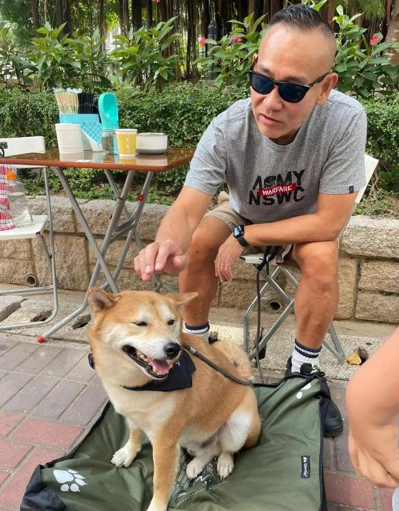粉丝们在路边摊遇到他,还有那只可爱的柴犬。