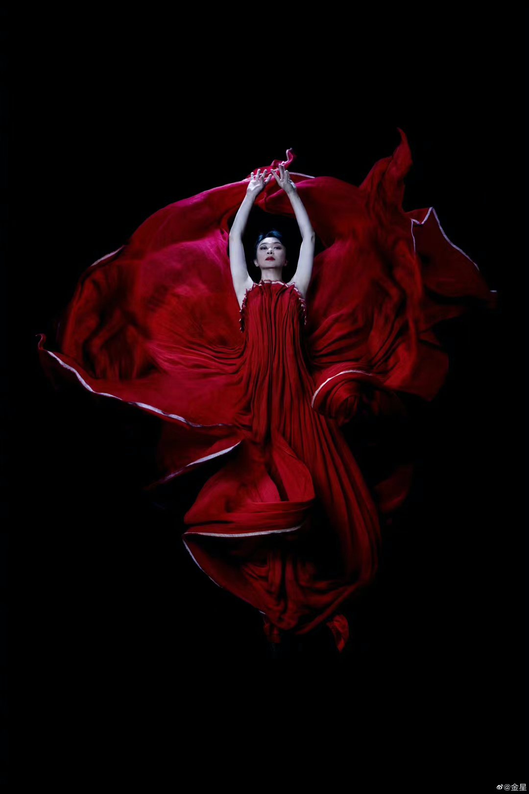 一年后,重登舞台。一身红裙,热烈、自由、欢欣。