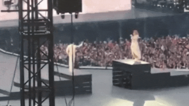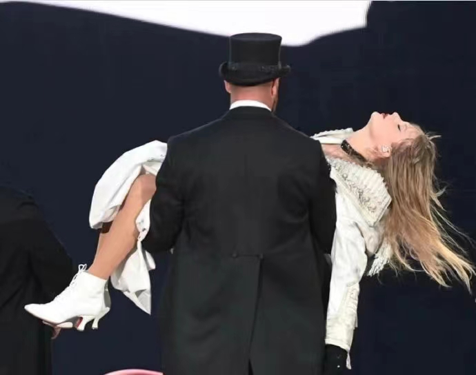 但这次巡演也有发糖小甜蜜……有一场演出,霉霉的体育生男朋友特拉维斯·凯尔斯,上场当了一次助演嘉宾,还根据“小品情节”,男友力爆棚地抱起了霉霉,台下一片尖叫。