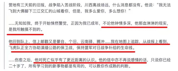 与张大飞的感情线,是《巨流河》全书最感人的一部分。虽然这部分,在书中比重很小。