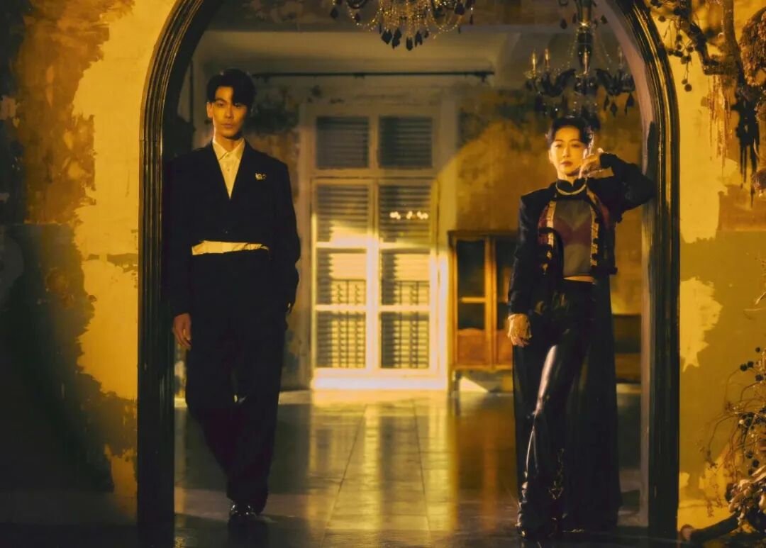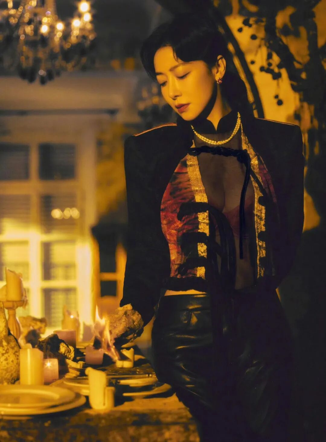 陈紫函和戴向宇可以说是形影不离,下面一组写真集,陈紫函身穿黑色蕾丝礼服,白色珍珠作为装饰,在光影中复古时尚相结合。更有开放不失优雅的美感。