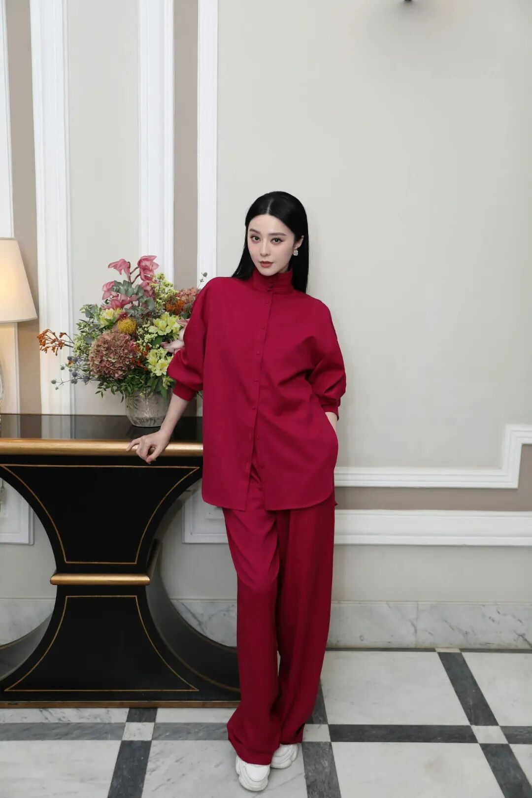 43岁范冰冰依靠墙面,一套中国红瞬间封神!