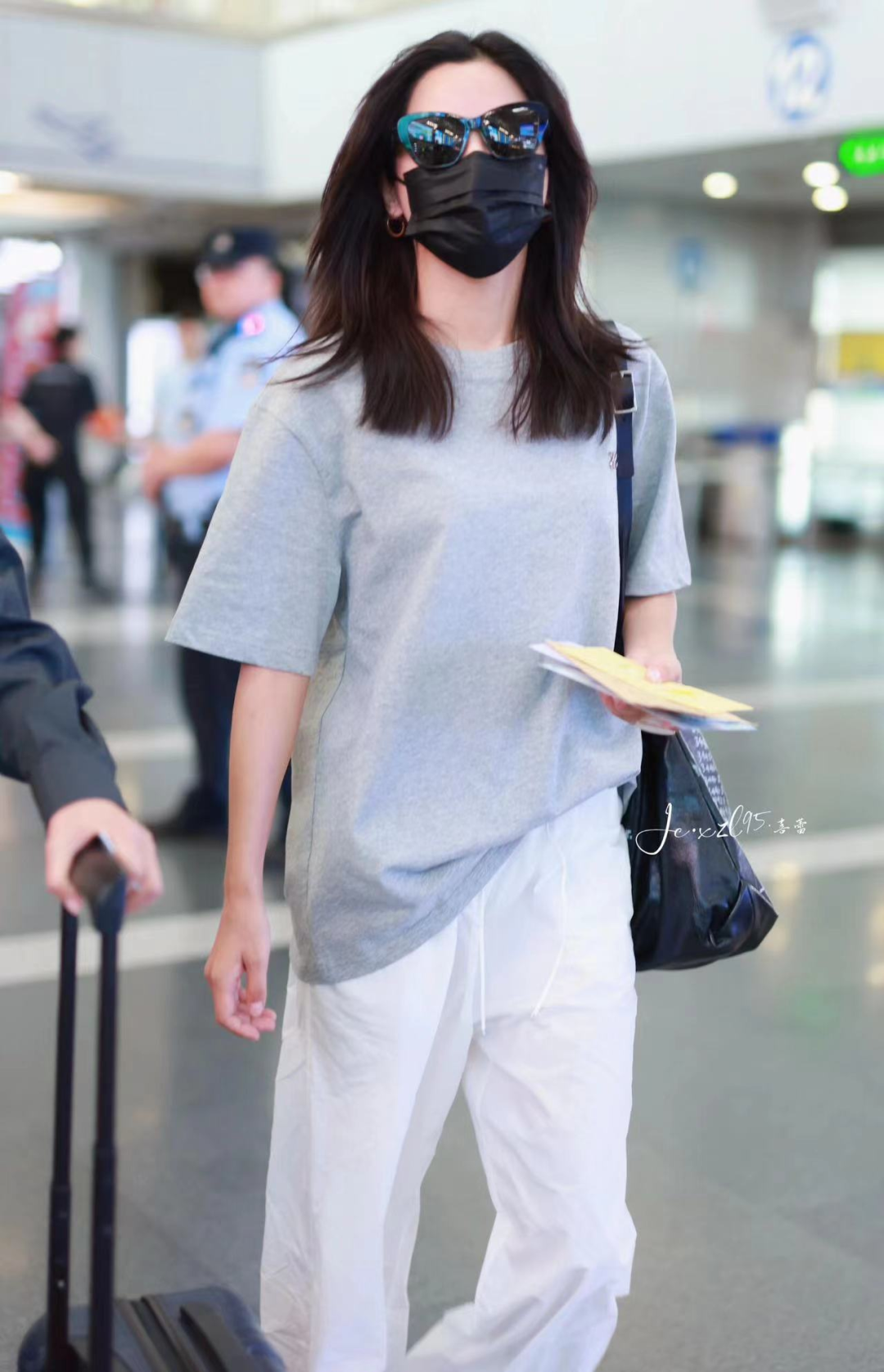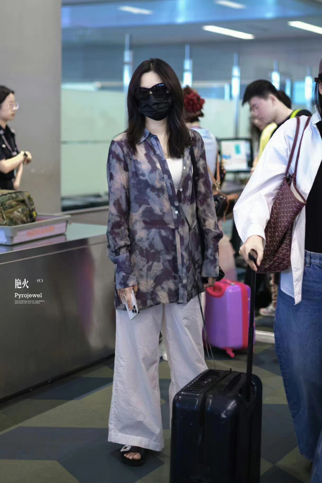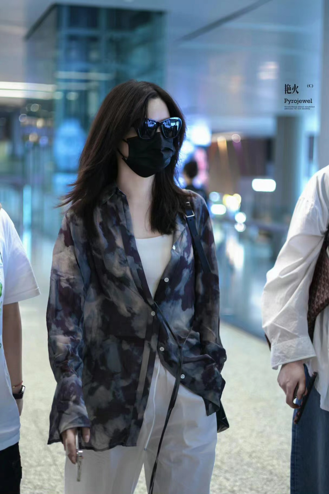 这两天素颜带墨镜的她,一袭简单休闲的水墨色衬衫出镜,却依然超凡脱俗的像个时尚种草机。