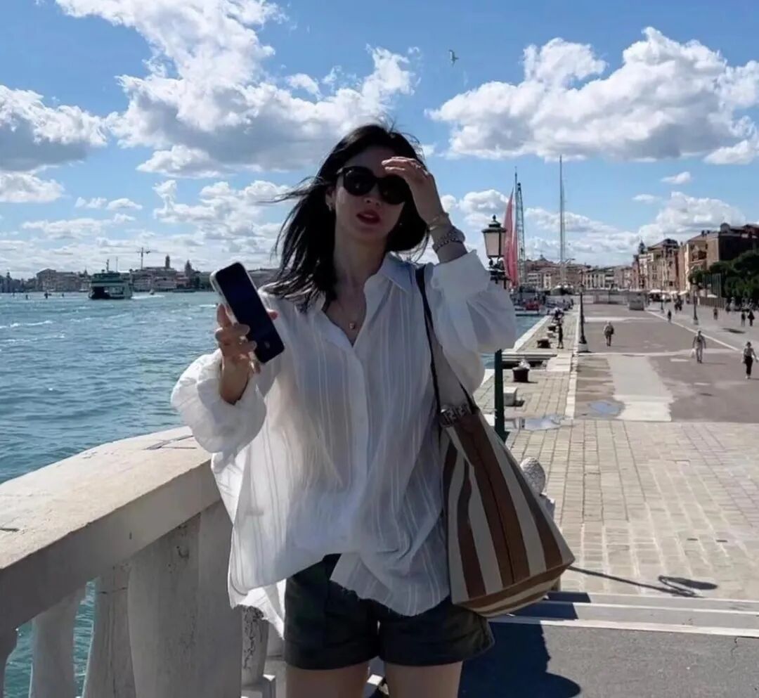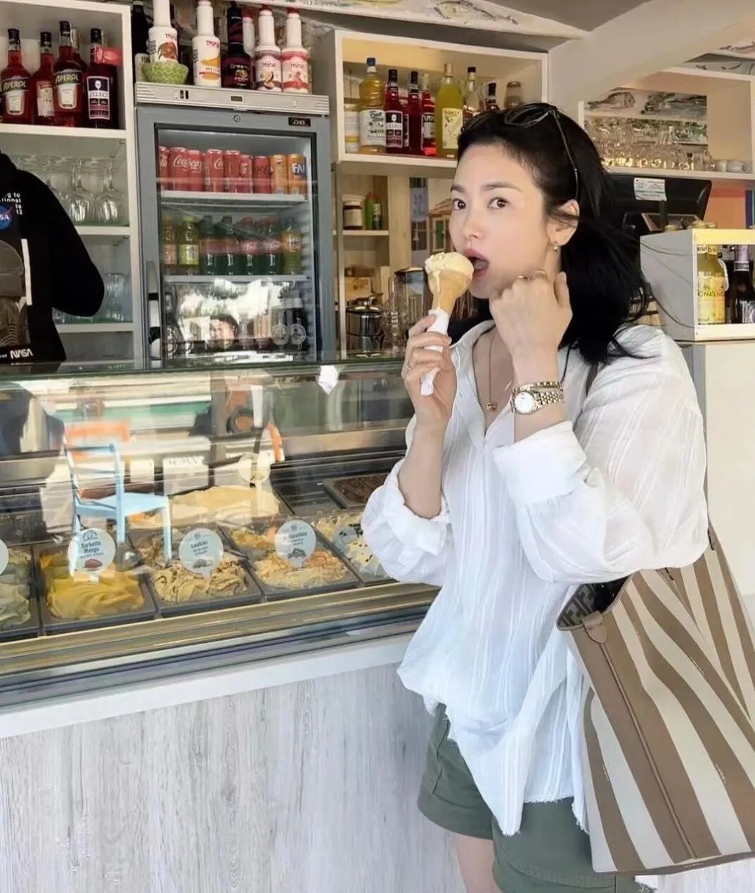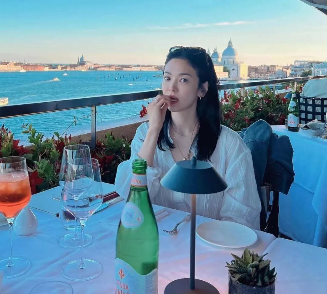 43岁宋慧乔离婚后让人慕了,穿白衫清纯回归,国外度假真松弛!