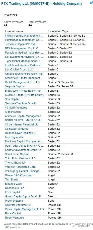 今天看了一下投资 FTX 的投资机构名单,基本上可以说有头有脸的机构都参与了(如下图)。而因为投资 FTX 严重受损的机构,除了直接的资金损失外,品牌形象同样非常重要。而这里的品牌,最核心的就是大家对机构 DD (尽调)能力的质疑。