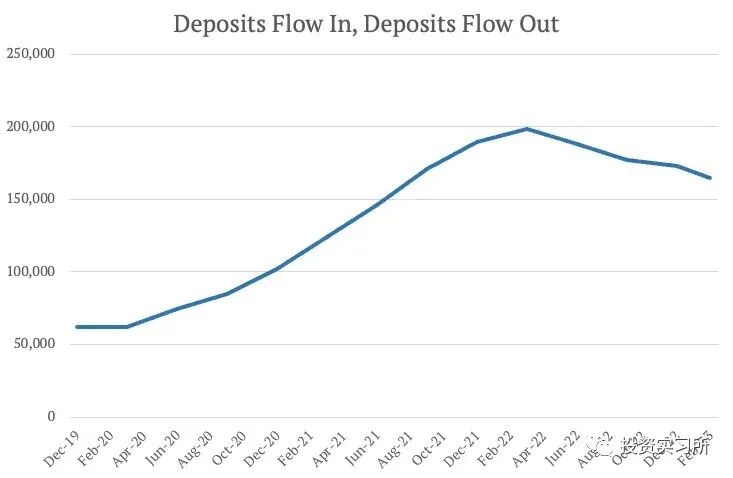 然而,CEO和CFO都没有预料到存款可能会更快地流失。这很奇怪,因为他们之前见过存款流失的情况。20年前互联网泡沫破裂后,在2001年底客户取出现金储备后该银行的存款从45亿美元下降至34亿美元左右。