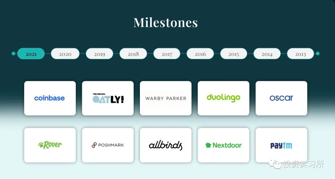 2021 年投的就比较多了,包括了 Coinbase、Duolingo 以及 Paytm 等在内的总共有 8 家公司