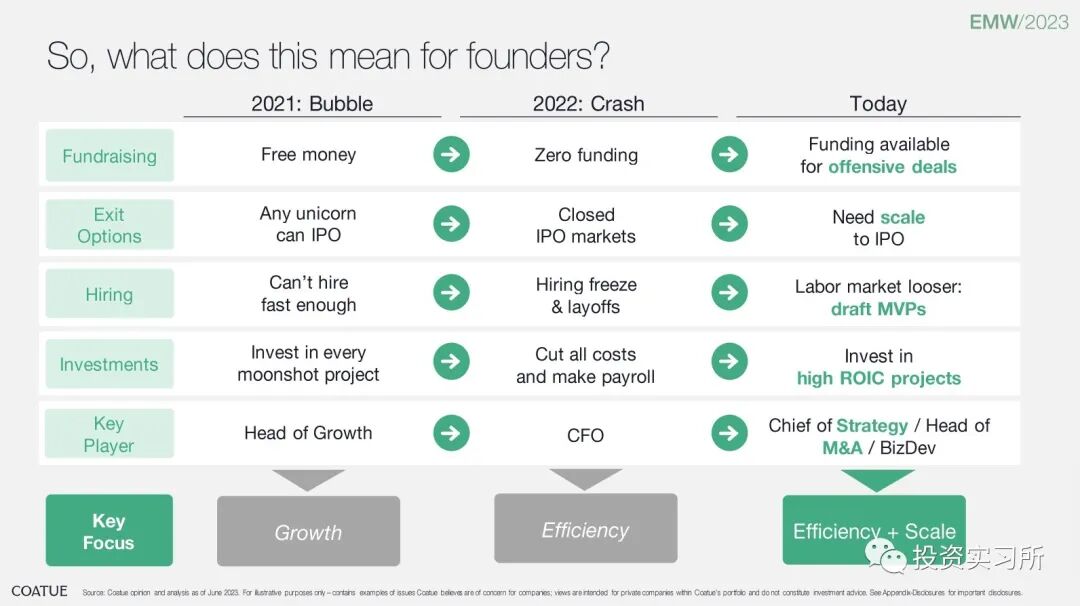 对于创始人来说,你现在面临的是这样的环境:从只关注增长到关注效率,再到如今必须同时关注效率及规模化增长