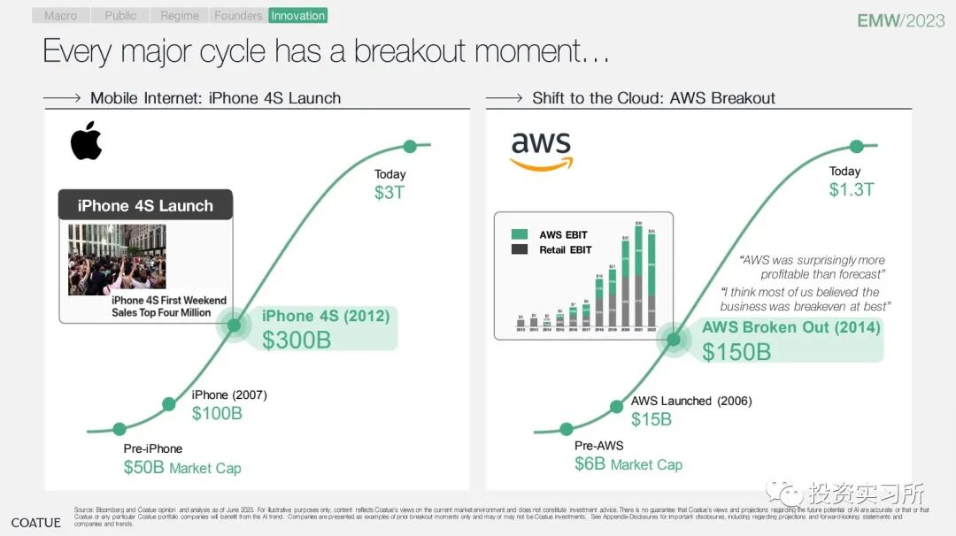 每个主要周期都有自己的 breakout 时刻:移动互联网的 iPhone 4S 发布,云时代的 AWS 上线